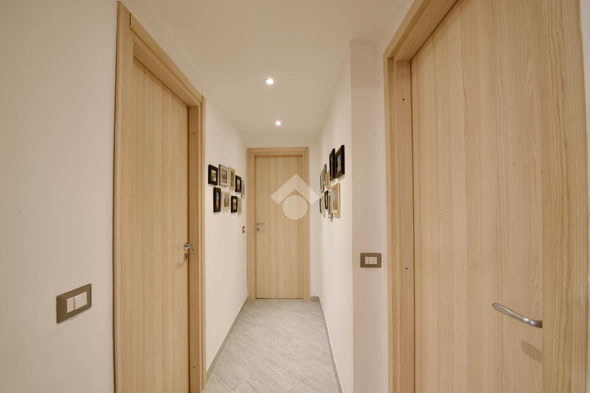 La recente ristrutturazione ha conferito all'appartamento una pavimentazione uniforme in gres porcellanato effetto parquet e infissi interni nuovi in rovere sbiancato. Gli impianti idrico ed elettrico sono stati completamente rinnovati, assicurando efficienza e sicurezza. Con riscaldamento centralizzato e condizionatori, questo appartamento è pronto per essere abitato senza ulteriori lavori. Non perdere l'opportunità di vivere in un contesto tranquillo e ben servito!